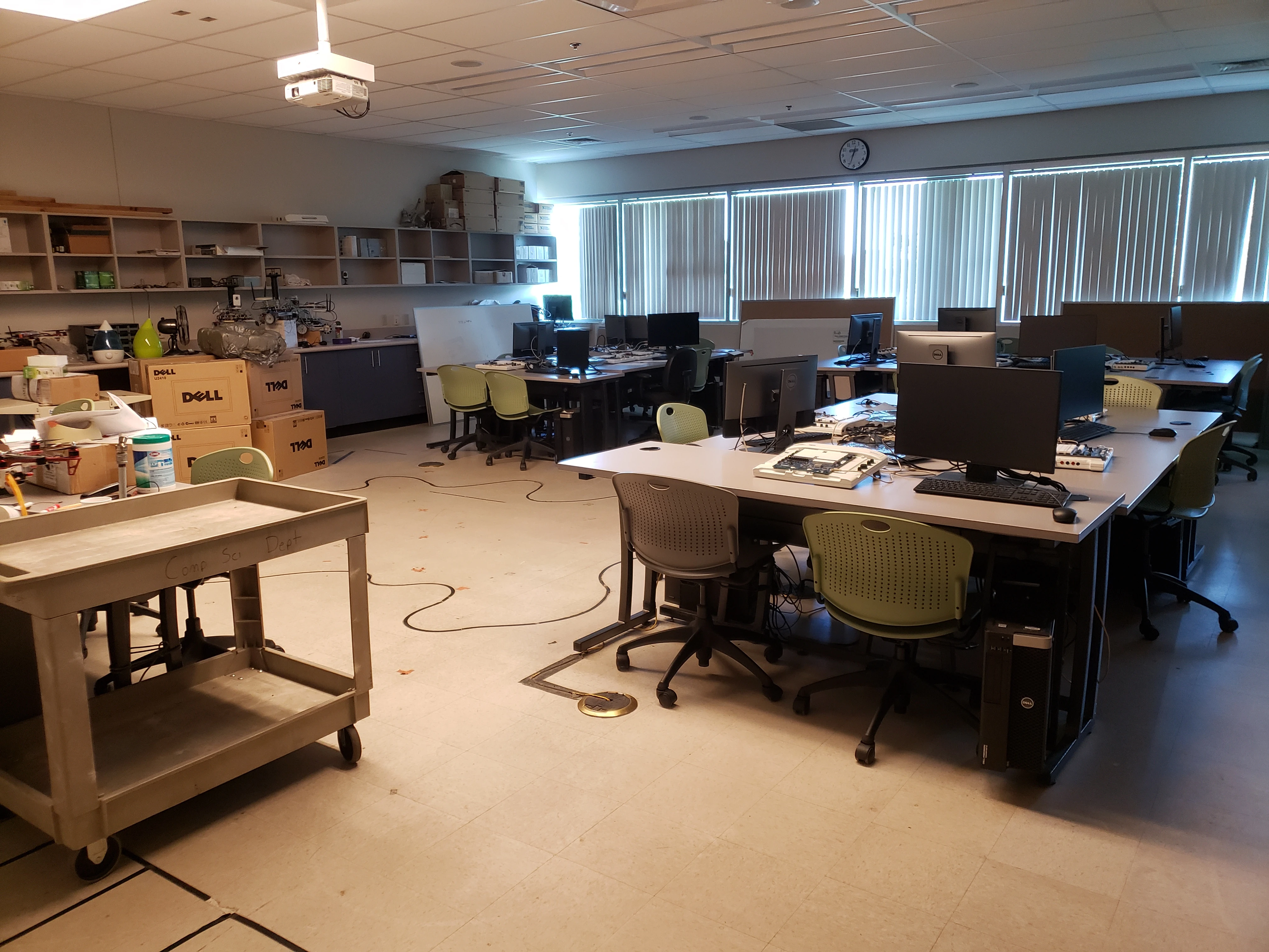 This lab is managed by the ECE faculty. It is used for research in digital and wireless communications, as well as courses in communications and digital signal processing. It is equiped with signal generators and analyzers, NI Elvis II systems, scopes, function generators, and software defined radios. This lab is also used for engineering outreach for high school students during the summer.